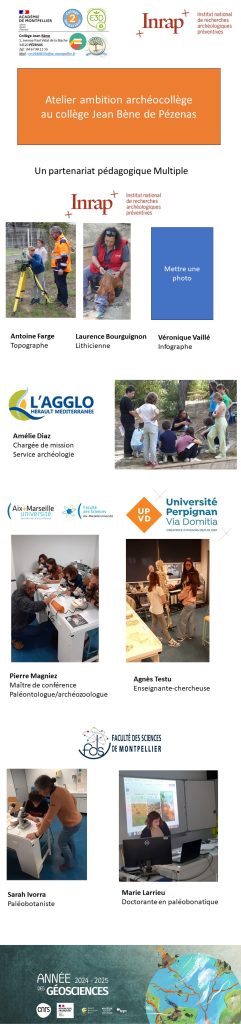 Les divers partenaires de ce projet : Service archéologique de la Communauté d'Agglomération Hérault Méditerranée / INRAP / CNRS / Université Aix-Marseille / Université Perpignan-CERD / GREPAM