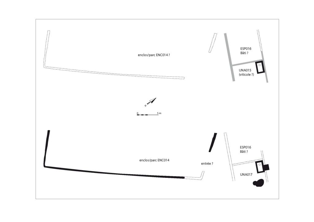 L’intervention aura donc consisté à caractériser quelques composantes de deux établissements ruraux dont l’emprise s’étend assez largement au-delà des surfaces dégagées. Ils seraient établis à l’emplacement d’habitats antérieurs (âge du Fer, période républicaine) et accueilleraient des installations agro-pastorales diversifiées. L’enquête socio-économique envisagée est cependant privée de nombreux indicateurs (installations et artefacts).