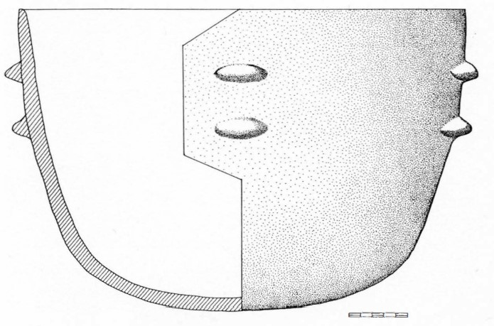 La fosse, de forme tronconique, contenait des récipients en céramique, dont une marmite tulipiforme, une écuelle et un pot tronconique, ainsi que des fragments de torchis cuits. Les analyses des nodules scoriacés ont montré qu'ils ne provenaient pas de la métallurgie du cuivre, mais pourraient être liés à la destruction d'un four en torchis. Les vestiges lithiques ne sont pas très abondants et se composent d’un nucléus et un éclat en quartz, un fragment de lame chauffé et un fragment de grattoir en chaille grise.
