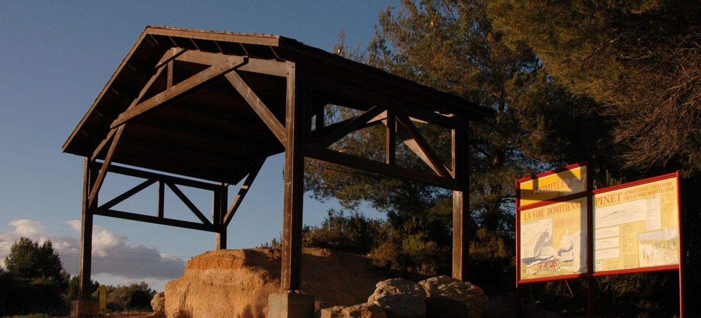 Plus spécifiquement la voie domitienne traverse notre territoire d'ouest en est et plus particulièrement les communes de Saint-Thibéry, Florensac, Pinet et Montagnac. Si sur certaines portions elle reprend le tracé de la voie Héracléenne. Elle ne le reprend ici qu'à partir de Pinet. Elle est donc une création ex-nihilo à l'ouest de cette commune. La structure de la voie n'est pas pavée comme elle peut l'être dans certaines villes comme par exemple à Narbonne.