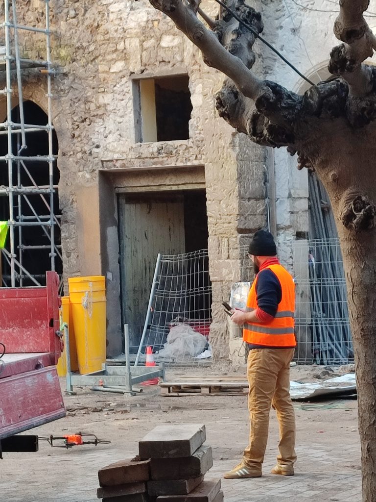 A l’aide d’un drone il a réalisé des photogrammétries des façades (relevés précis et topographiés) ; des vues d’ensemble et à l’aide d’un scanner, il a relevé les intérieurs de l’édifice. Le but : obtenir des supports précis afin de permettre aux archéologues d’étudier l’évolution architecturale du monument, obtenir des relevés 3D qui permettront de vérifier les hypothèses émises. Mais pas que, ces relevés serviront aussi à travailler sur le projet d’aménagement en proposant différents scénarios, ils pourront aussi servir pour la valorisation de l’abbaye lorsque le moment sera venu.